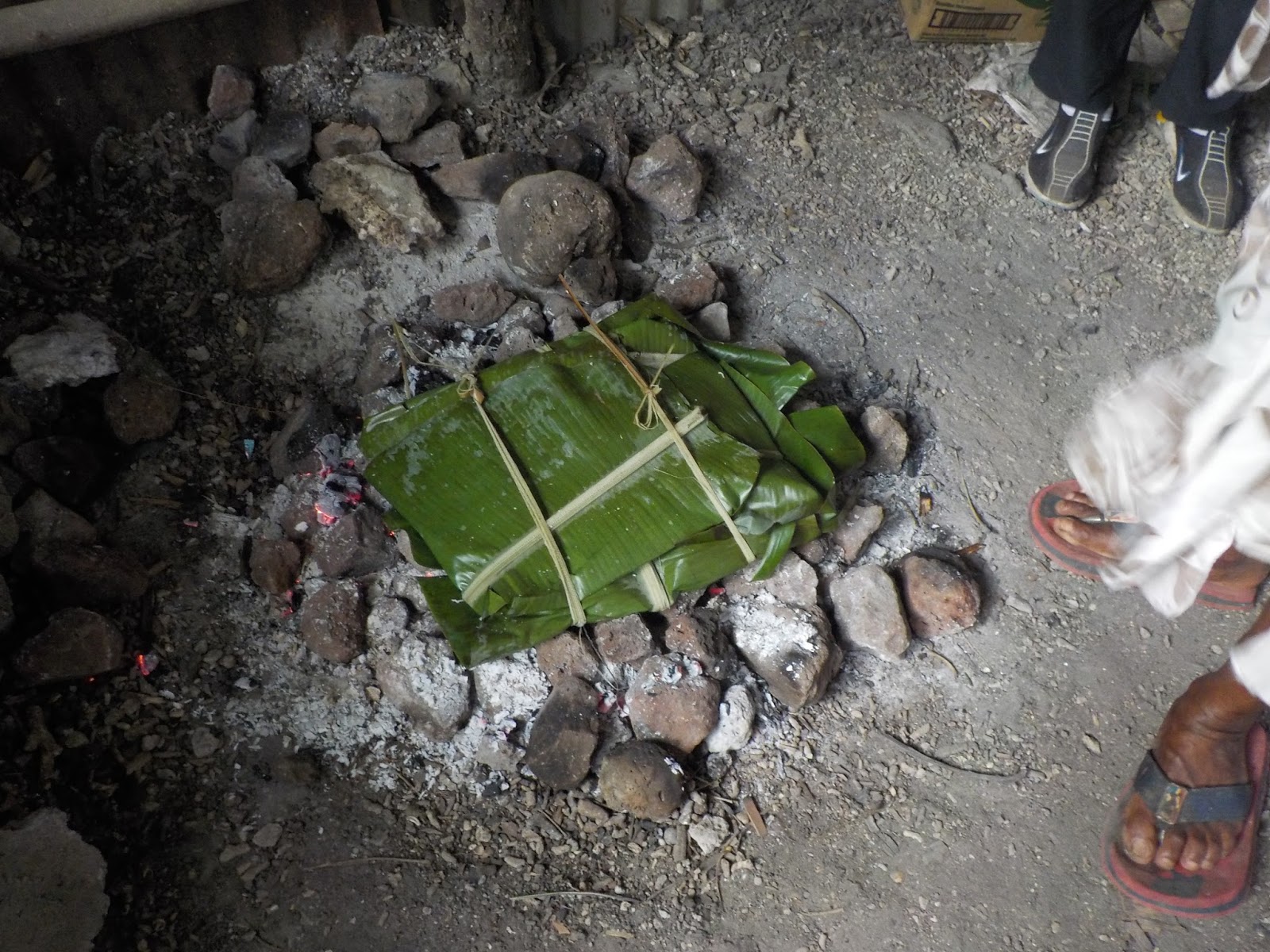 Next, you have to get your oven ready. So my auntie made this fire and burning all the stones. |